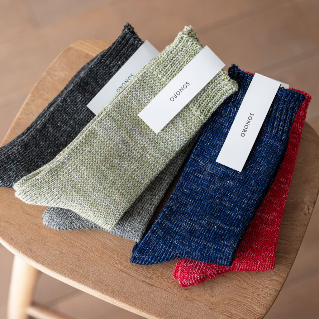 ウール×リネンのいいとこどりのソックスが新登場!じんわりと温かく、リネン特有のしゃりっとした履き心地もある一足。厚すぎず薄すぎない程よい生地感で、ロングシーズン活躍し、お出かけはもちろん、ご自宅でのリラックスタイムにもおすすめです。